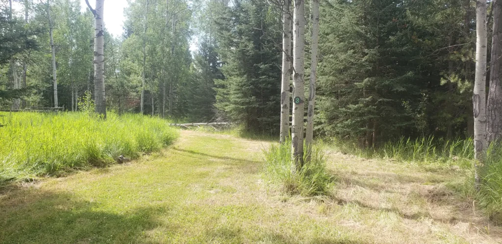 Effortless Forest Luxury. Surrounded by a tranquil perimeter of trees, Site #3 offers a grounded, no-frills forested experience. Positioned just a short four-minute stroll from the lakeside pathway and facilities, it balances the raw beauty of the wilderness with the sophisticated ease of a wide, accessible site.